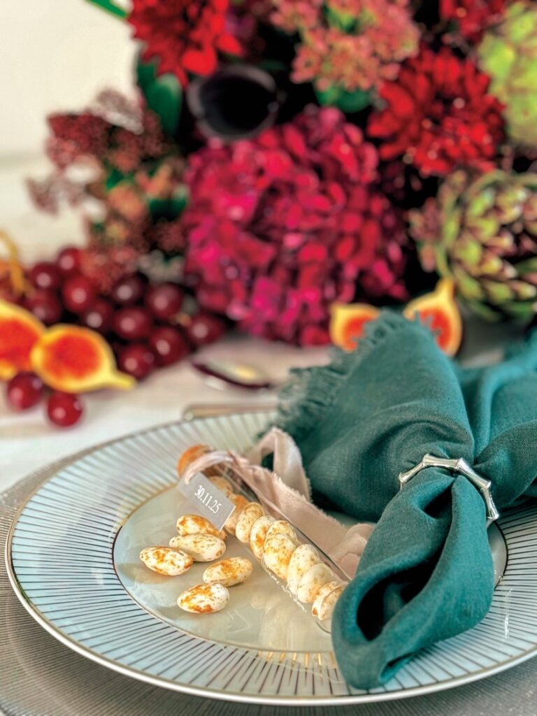 The new bronze metallic shade of the Crispy Twist Hatziyiannakis sugar dragees brings a modern, radiant touch to your winter wedding favors. Step away from the ordinary with Crispy sugar dragees, featuring a crunchy cereal core and rich cocoa cream for a light yet irresistible taste. Their bronze color pairs beautifully with both elegant and minimal concepts – think a small box with your initials or simple white tulle adorned with dried flowers and metallic thread. The chic result is sure to make a stunning impression!